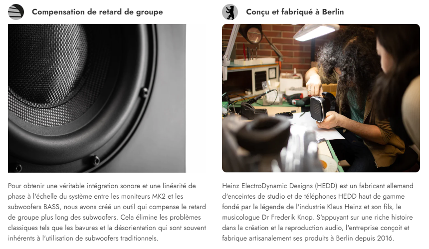 - Permet une configuration complète du caisson de basses satellite à phase linéaire avec les moniteurs MK2