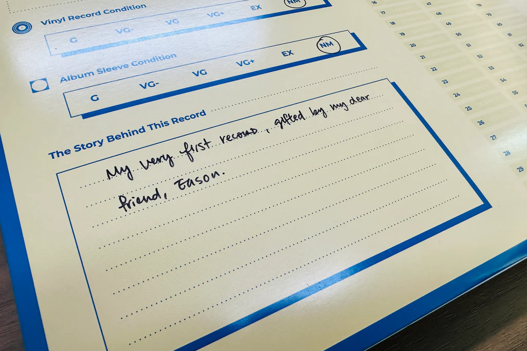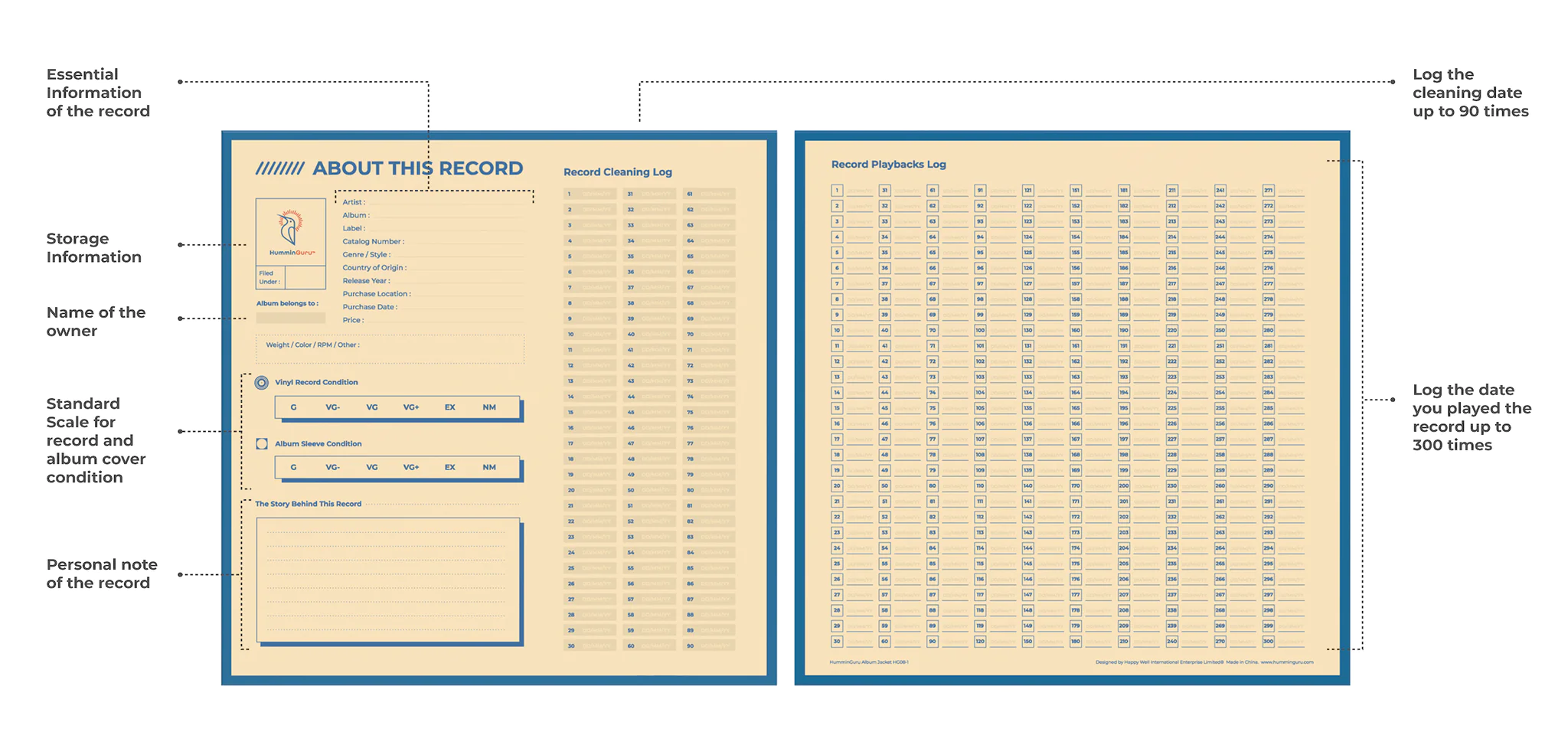 Chaque fois que vous écoutez le disque, notez la date de lecture du disque au dos de la pochette de l'album , avec un espace pouvant contenir jusqu'à 300 entrées . Cet enregistrement visuel présente le nombre de fois que le disque a été joué depuis que vous l'avez acquis.