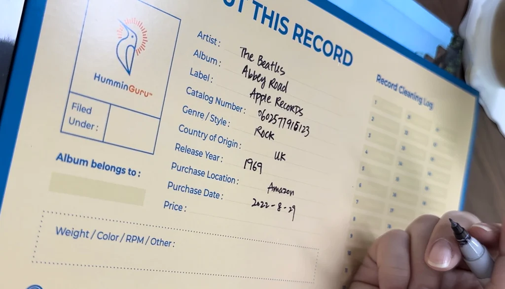 Ensuite, notez la date de nettoyage sur le journal de nettoyage de la pochette de l'album pour suivre les soins apportés au disque. Il offre un espace pouvant accueillir jusqu'à 90 séances de nettoyage , démontrant votre dévouement et votre dévouement au maintien de la qualité du disque.