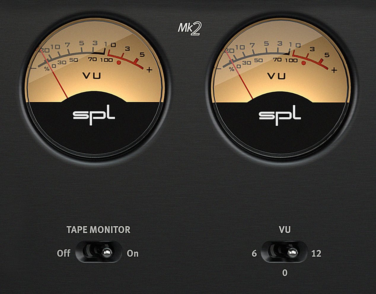 Deux indicateurs mécaniques VU visualisent les niveaux d'entrée pour les canaux audio gauche et droit. Avec le commutateur VU, vous pouvez optimiser l'affichage pour différents niveaux de signal.