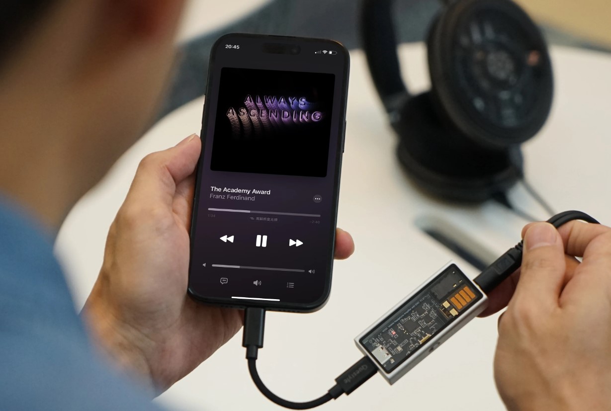 Pour connecter un appareil Apple équipé d'un connecteur Lightning (comme un iPhone, iPad ou iPod), nous vous recommandons d'utiliser le câble optionnel Questyle LTC-02, Lightning vers USB-C. Ce câble a été spécialement développé pour optimiser la compatibilité entre les appareils Apple et Questyle, et il est certifié Apple MFi.