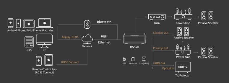 Le RS520 est un produit tout-en-un avec lecteur réseau, DAC et amplificateur intégrés.