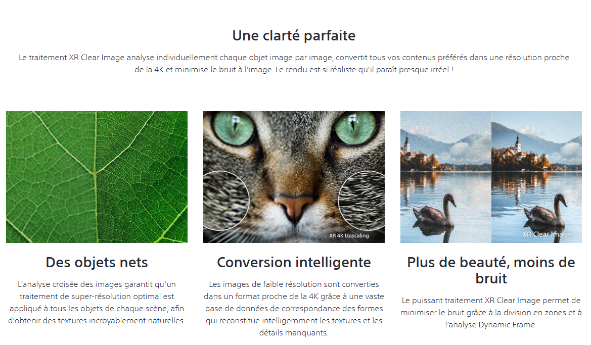 - Processeur XR avec Dynamic Tone Mapping : HDR dynamique image par image, sans réglages complexes.