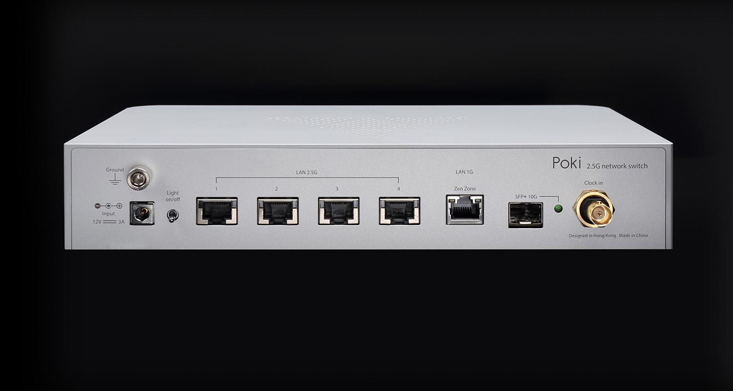 Le port SFP 10 Gbps fait du Poki un switch professionnel pour usages audiophiles, combinant la vitesse, la pureté du signal et la longévité.