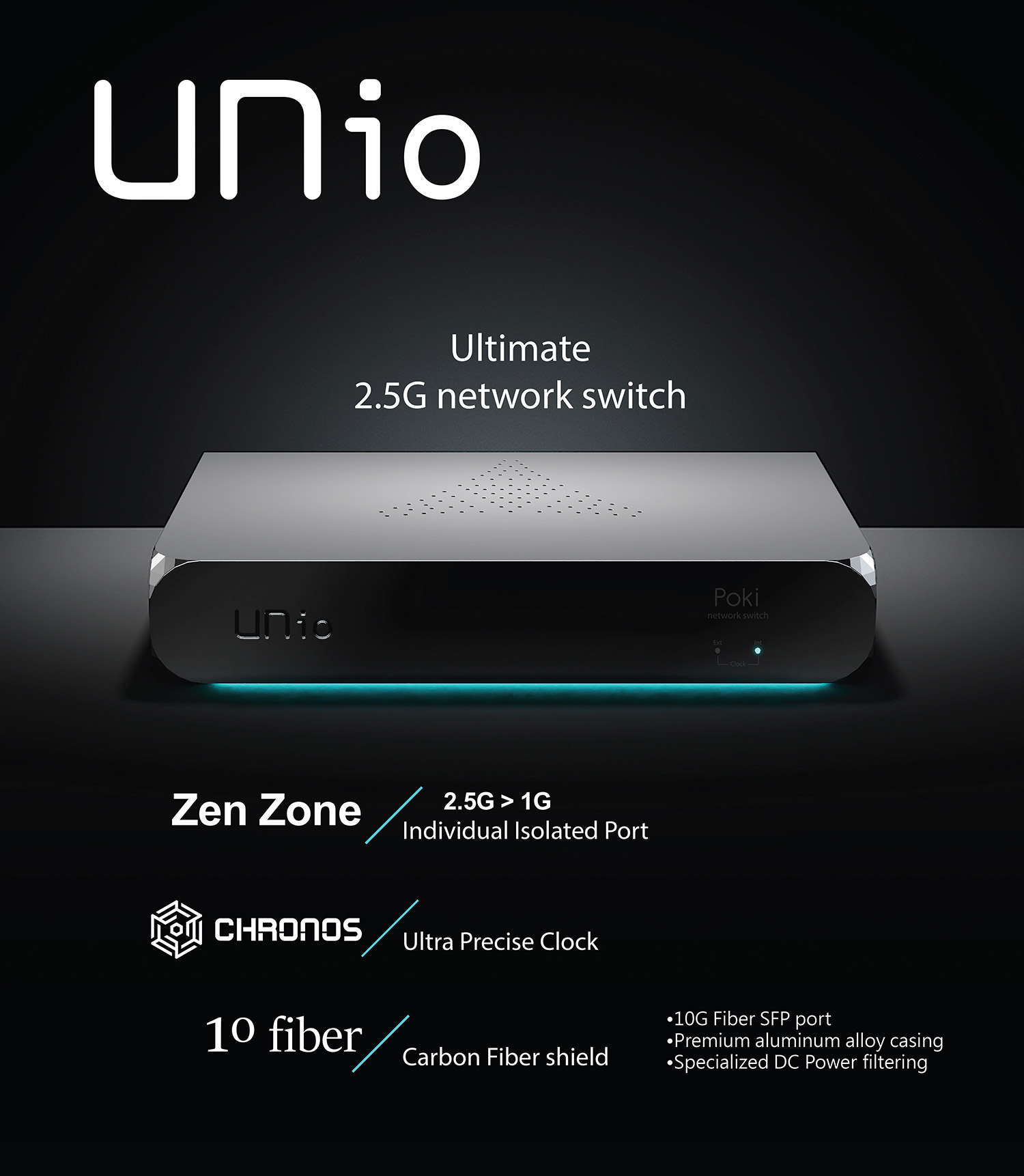 Le premier switch audiophile 2.5G + 10G SFP signé UNio / ungnoi, conçu pour sublimer le streaming audio et vidéo haute résolution.